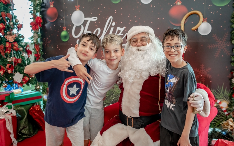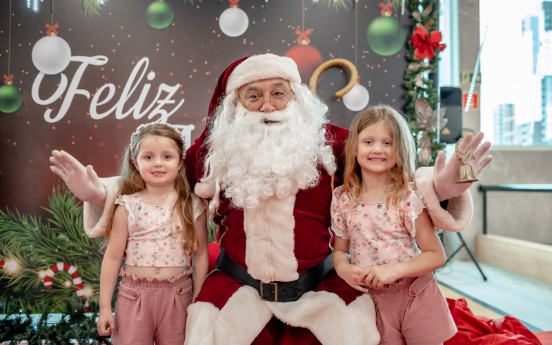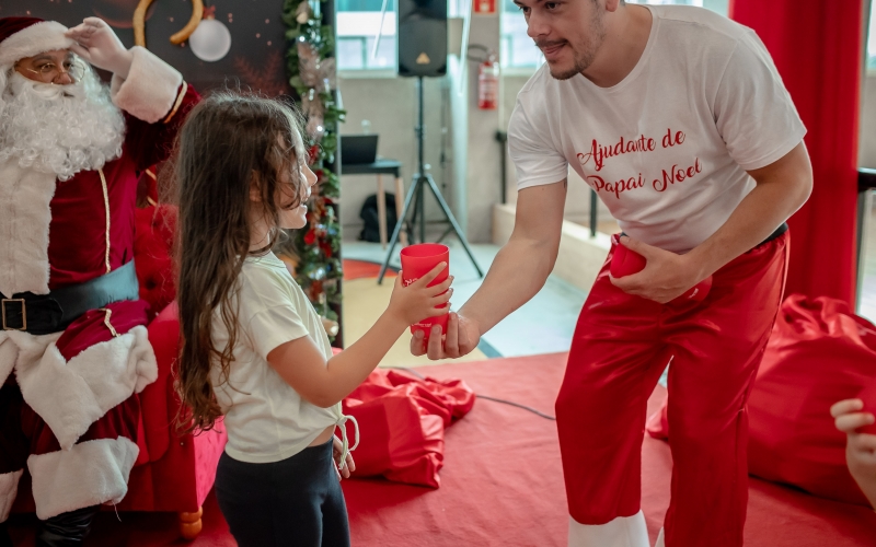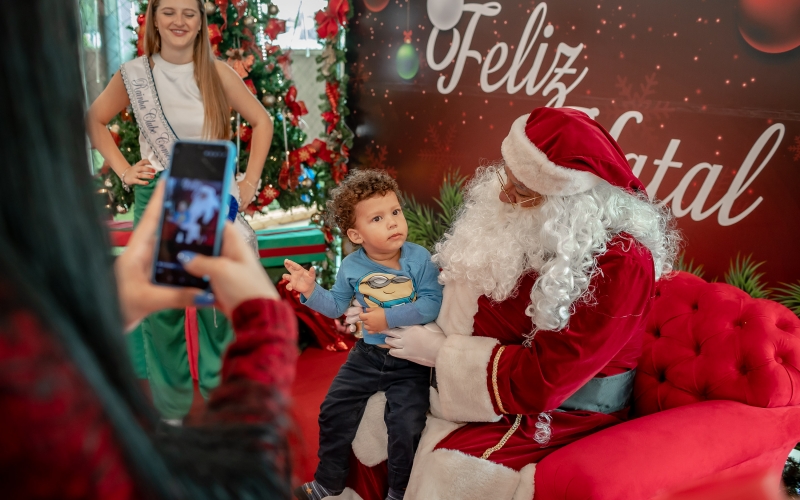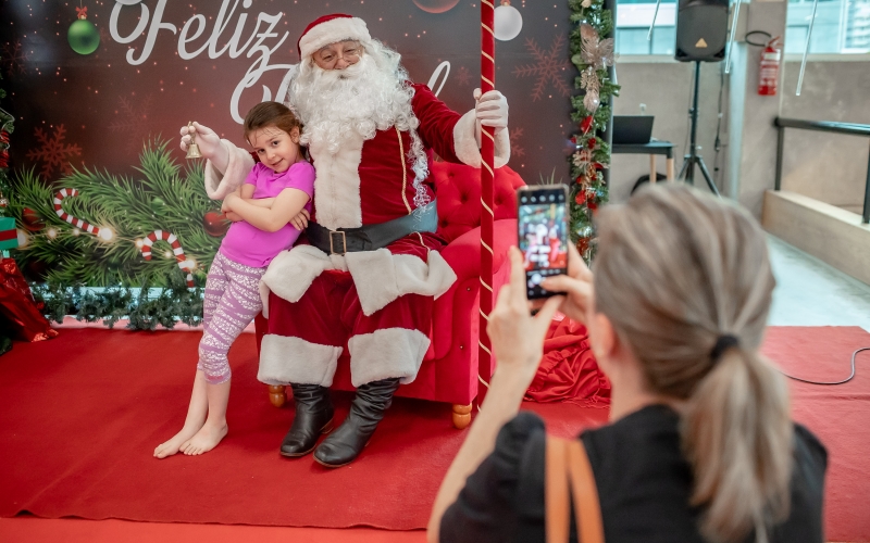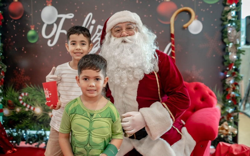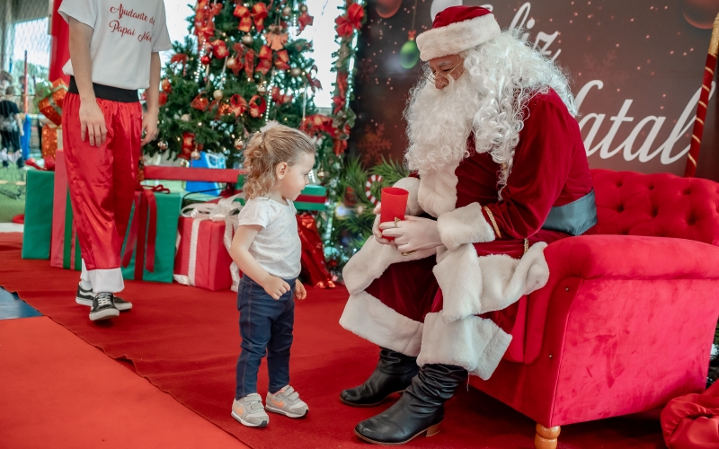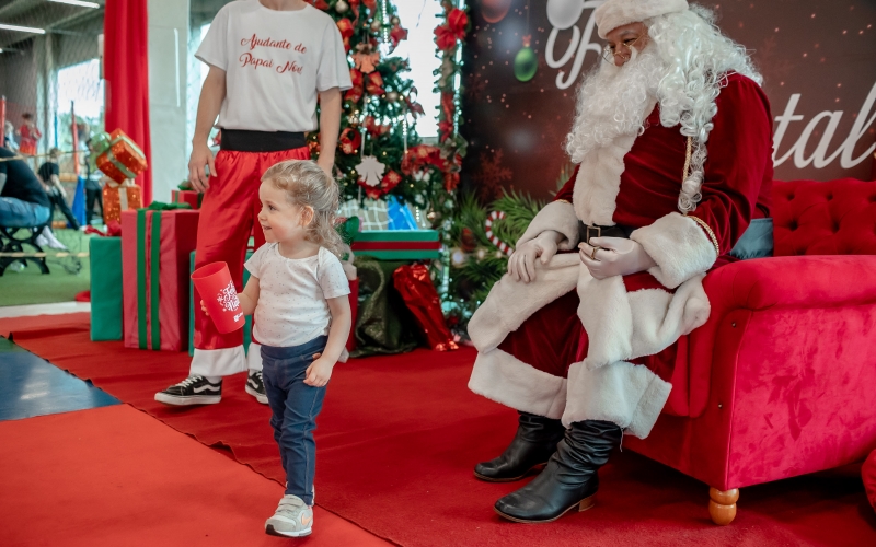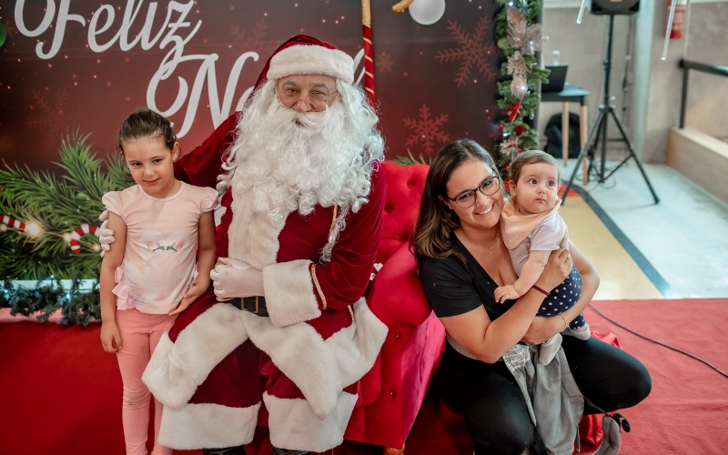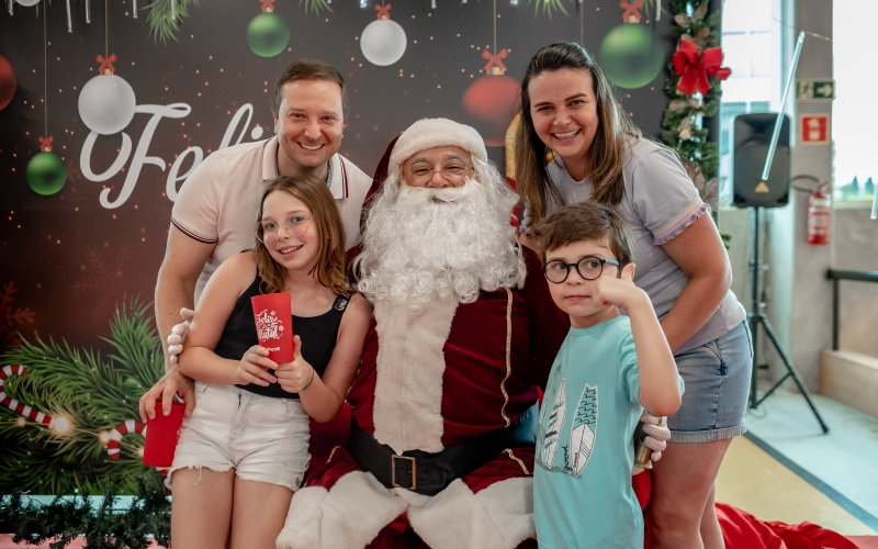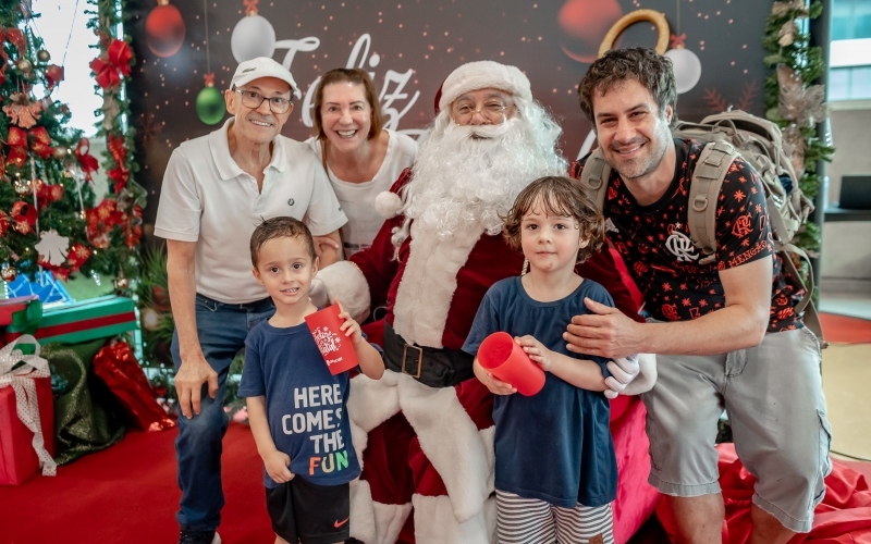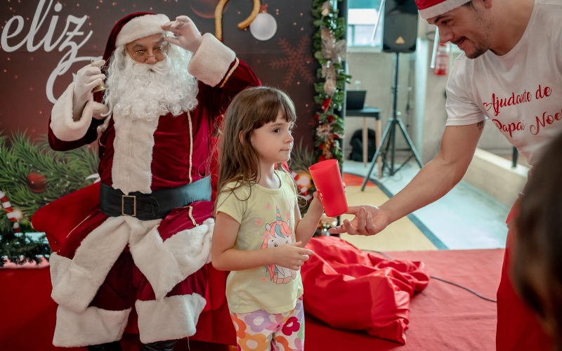 As crianças radiantes tiraram fotos encantadoras com o Bom Velhinho e receberam um copo personalizado como lembrança.