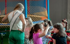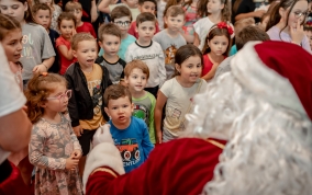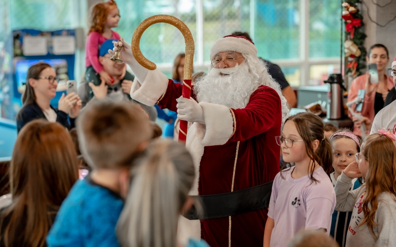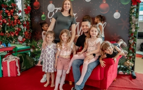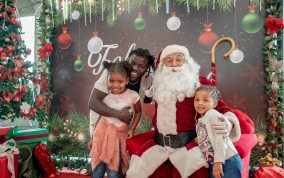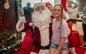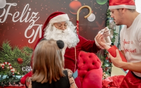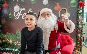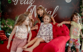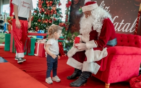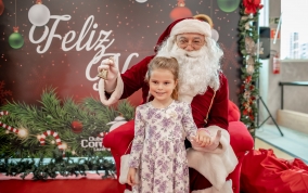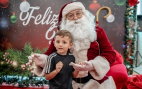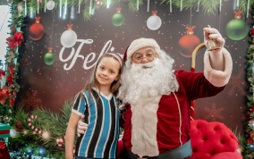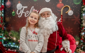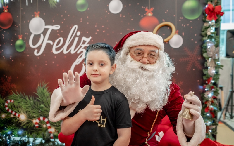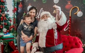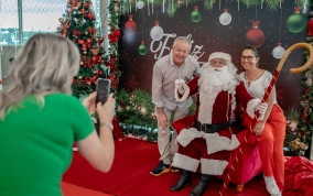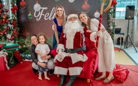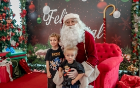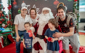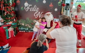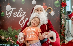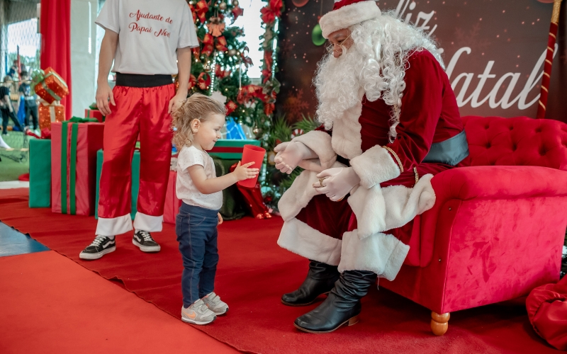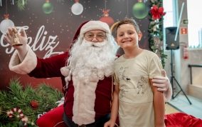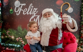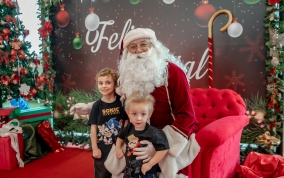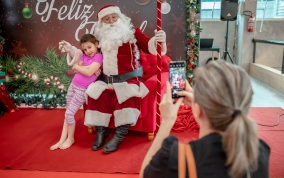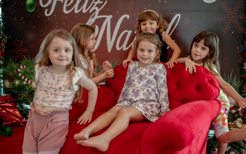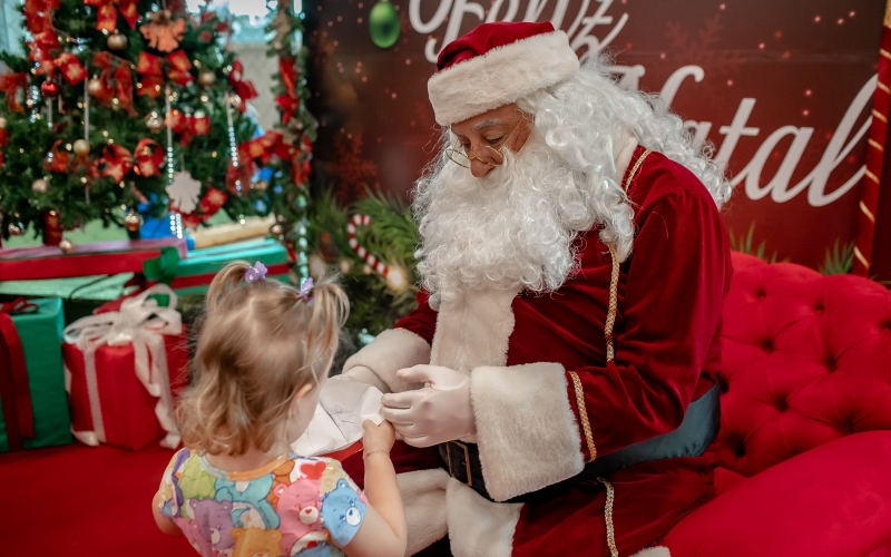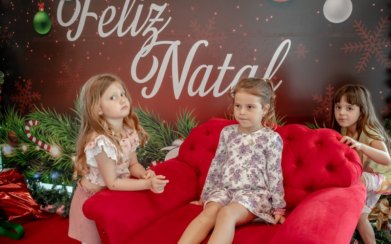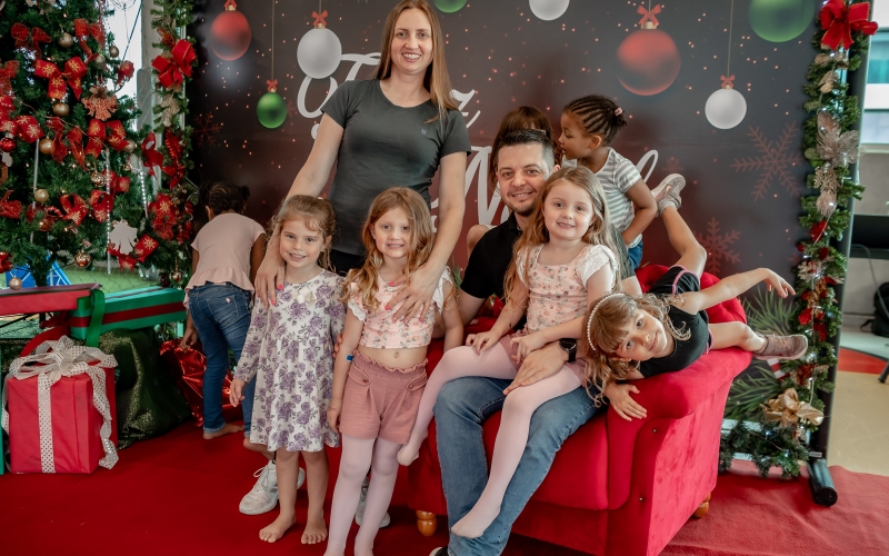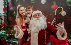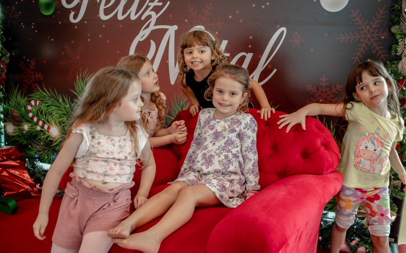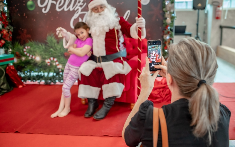 As crianças radiantes tiraram fotos encantadoras com o Bom Velhinho e receberam um copo personalizado como lembrança.